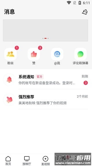 4、消息页面便于查看粉丝互动情况,包括点赞、评论、@我的内容以及弹幕信息。