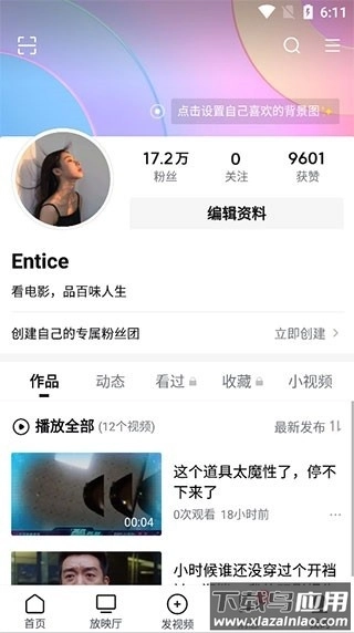 5、个人主页具备账号信息管理、作品查看功能,同时支持创建专属粉丝团;