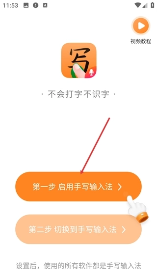 1、在引导页面点击【第一步-启用手写输入法】按钮,进入输入法管理界面,以便为启用目标输入法做好准备。