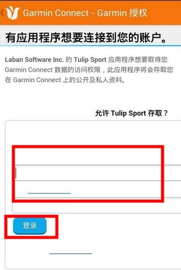 在Garmin Connect平台上,先填写账号信息和登录密码,再执行登录操作。