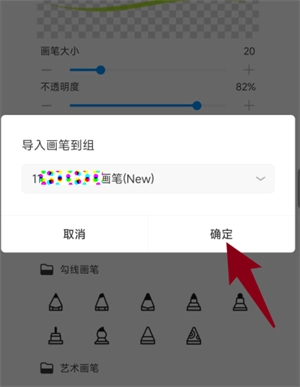 为新画笔选择一个分组,确认后点击确定。