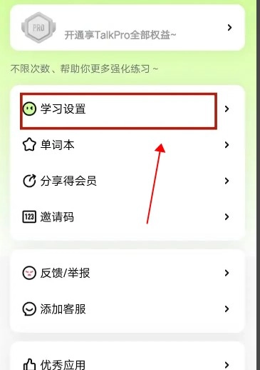 你可以先进入个人页面,然后找到并点击“学习设置”这个分类板块。