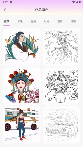 2、作品填色页面提供了多样化的模板,用户能够随时自由进行填充操作。