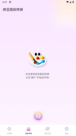 3、在拼豆转换页面,点击图片即可开启创作,实现图纸转换功能。