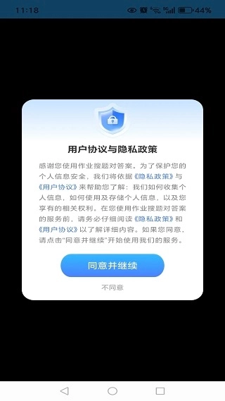 1、安装后查看用户协议和隐私政策,点击同意即可。