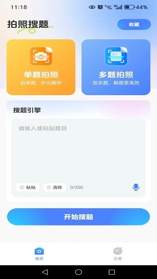 2、进入首页后,平台具备单题拍照、多题拍照功能,同时提供搜题引擎服务。