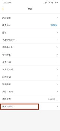 2、在设置界面,接着下滑点击最下方的账户安全。