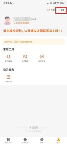 1、打开运满满,进入我们的个人信息界面,点击右上角的齿轮状按钮打开设置。