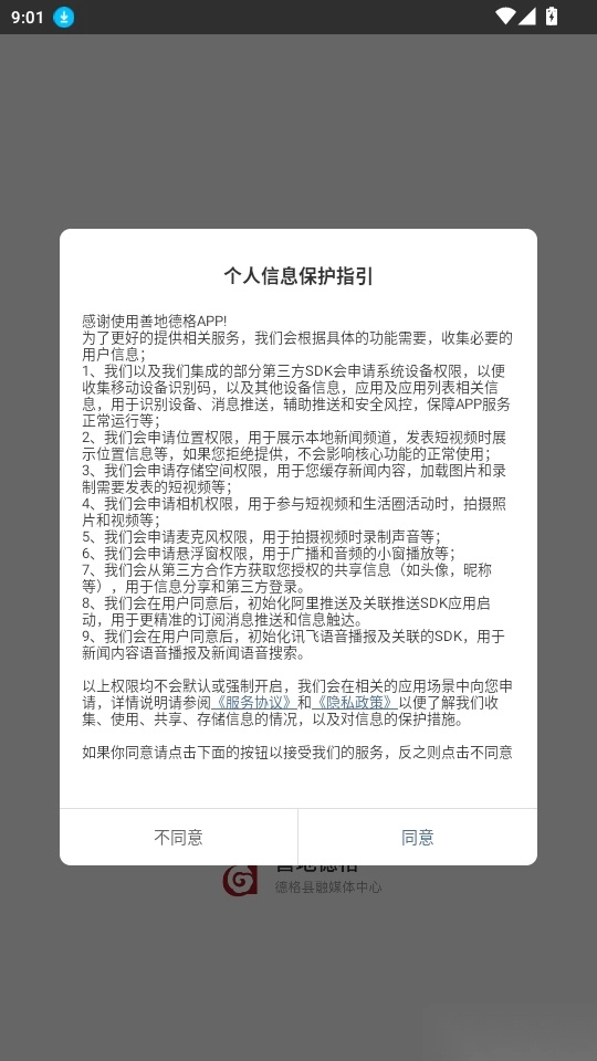 1. 启动软件后阅读《个人信息保护指引》,点击“同意”按钮进入系统