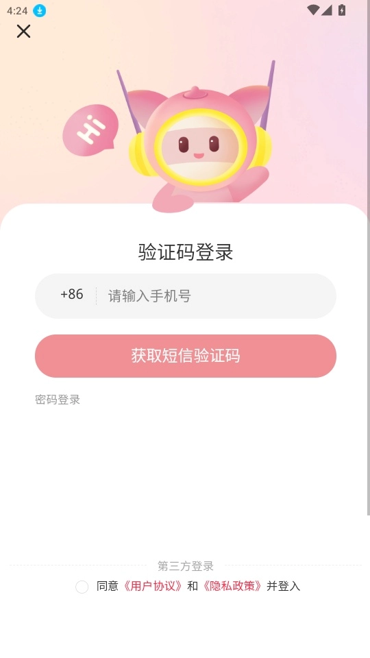 2. 输入你的手机号码,点击“获取短信验证码”,待收到验证码后将其输入就能完成登录操作。