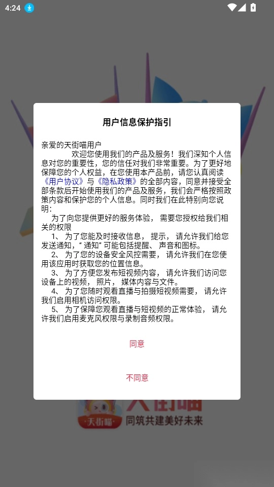 1. 启动软件后阅读《用户信息保护指引》,点击“同意”按钮进入下一步。