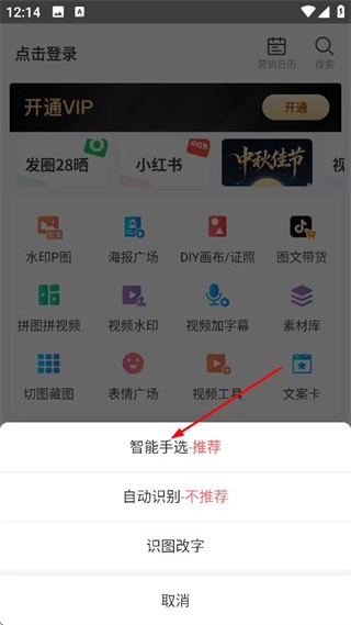 在操作选项菜单里,点击智能手选推荐选项,就能进入照片选择页面。