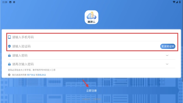 请依次填写手机号码、获取并输入验证码、设置登录密码,阅读并勾选相关协议条款后,点击“立即注册”按钮,即可完成账号注册流程。
