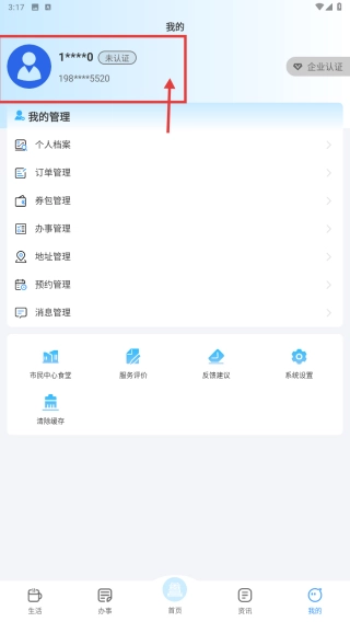 1、打开政务服务类应用后进入个人中心页面,接着点击底部的“我的”选项。