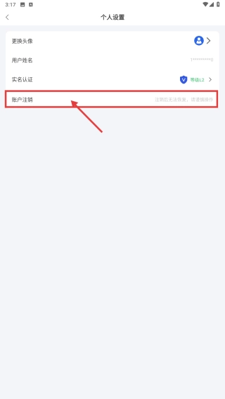 3、进入个人设置页面后,找到并点击账户注销选项,即可启动账户注销流程。
