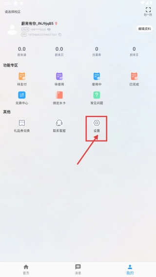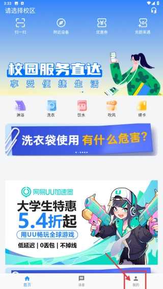 打开校园服务类应用,点击底部的“我的”选项,即可进入个人中心页面。