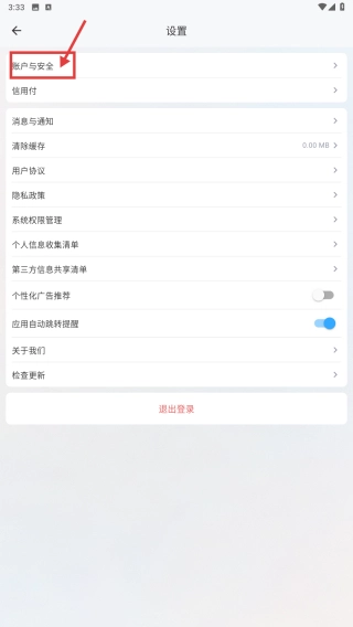 进入设置页面后,找到并点击“账号与安全”选项,即可进入账号安全管理界面。