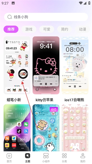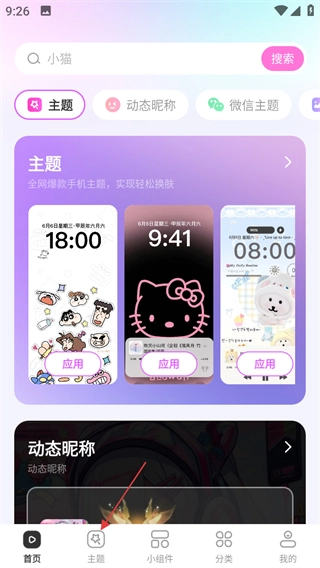 点击主题秀秀首页底部的主题,进入主题页面。