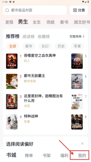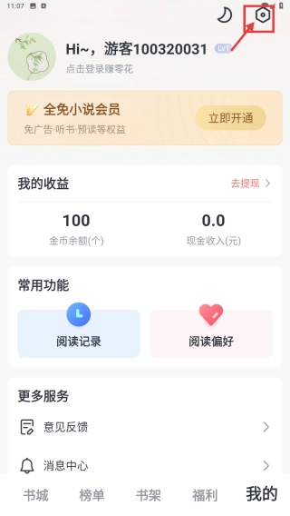 1、启动小说阅读类应用,点击底部的“我的”选项,进入个人中心页面。