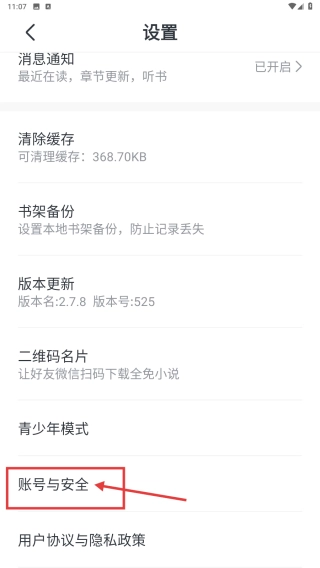 3、进入设置页面后,点击“账号与安全”选项,即可进入账号安全管理界面。