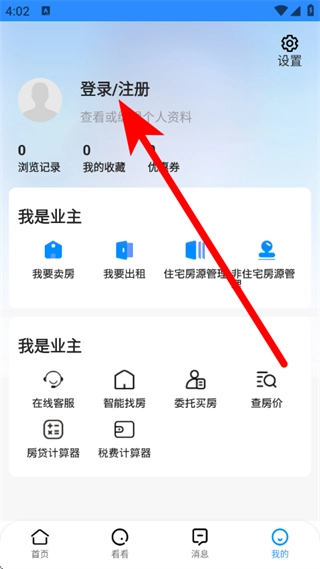 打开510房产网,点击底部我的,进入我的页面。