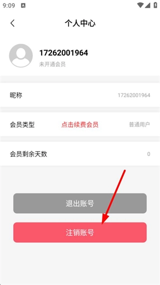 在个人中心页面,点击【注销账号】按钮,即可完成账号注销操作。