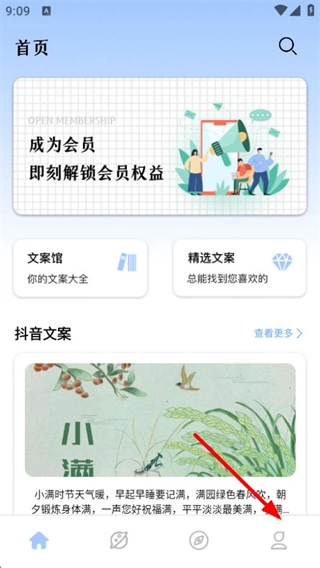 在文案馆首页,点击底部导航栏的“我的”选项,就能进入个人相关页面。
