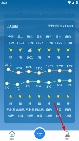 在皖美气象首页,点击底部导航栏的“我的”选项,会弹出功能使用提示弹窗。