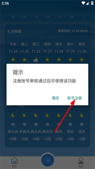 在提示弹窗里,选择账号注册选项,就能进入登录注册页面。
