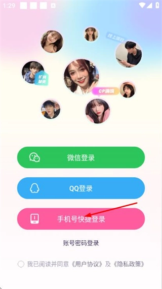 1、打开梦音应用,选择手机号快捷登录选项,进入对应的手机号登录界面。