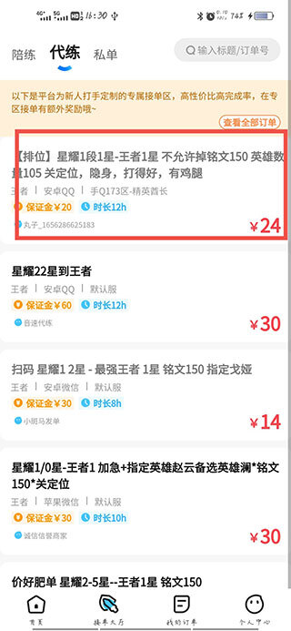 平台为代练玩家准备了海量优质订单,使其能够便捷接单,获取收入。