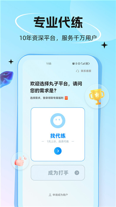 代练丸子是专注游戏代练的专业平台,这款软件支持诸多经典热门游戏,像《王者荣耀》《和平精英》《原神》《英雄联盟》《QQ飞车》以及《穿越火线》等,覆盖端游和手游。代练丸子始终致力于为玩家提供高效且稳定的代练服务,助力他们迅速提升游戏段位。
