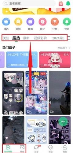 并打开软件之后可以点击下方的壁纸或者动态壁纸,在上方都可以看到壁纸分类,可以在这些分类里选择自己喜欢的壁纸类型。
