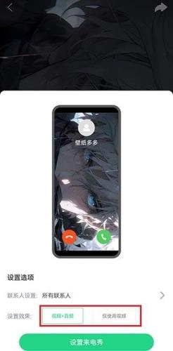 用户除了设置锁屏和壁纸,也可以设置来电秀,点击左下角的来电秀,即可开始设置,可以选择视频加音频或者仅用视频,之后点击下方“设置来电秀”即可。