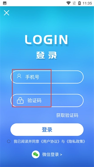 4、在登录界面,输入【手机号】和【验证码】,就能完成登录操作。
