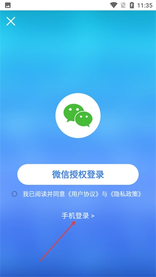 3、在登录方式选择界面,点击“手机登录”选项,即可进入手机号验证码登录界面。