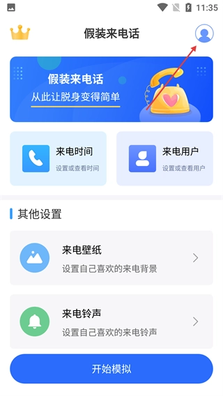 1、点击“假装来电话”界面右上角的个人图标,进入个人中心。
