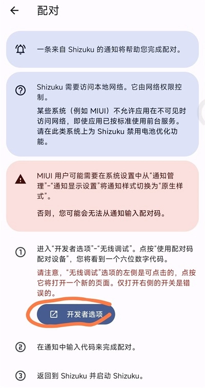 在Shizuku主界面的「无线调试启动」区域里,找到并点击「配对」按钮。