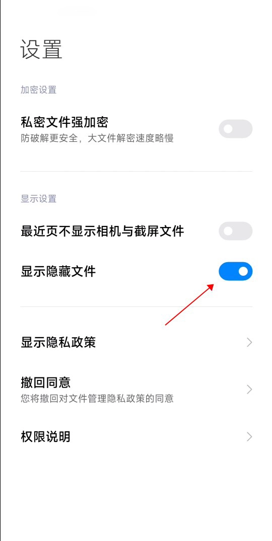 3、接着用户需要将【显示隐藏文件】开关点击开启。