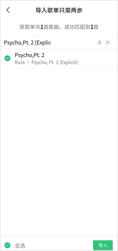 4、当歌曲匹配成功,点击右下角的“导入”,就能成功了。