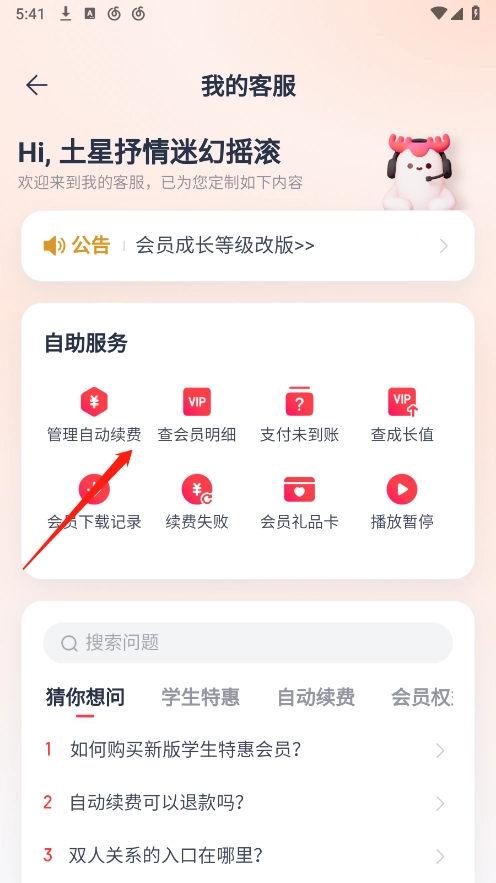 在我的客服页面,点击管理自动续费。