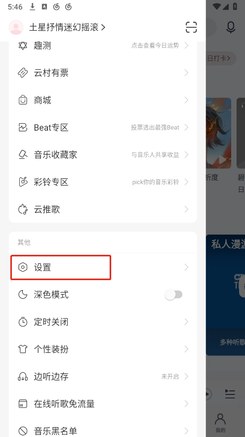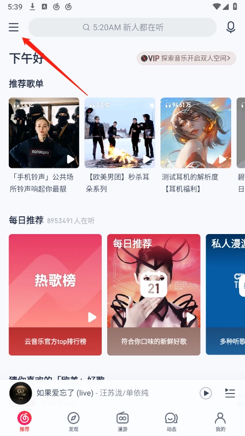 进入网易云音乐页面,点击菜单。