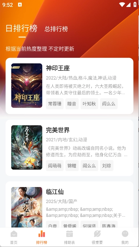 排行榜页面根据当前热度将影视进行排序。