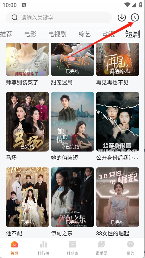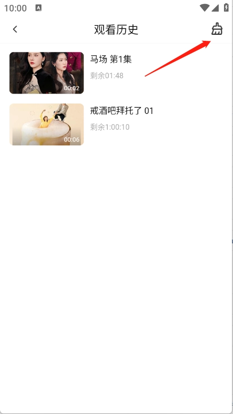 进入到首页之后,点击右上角的历史。