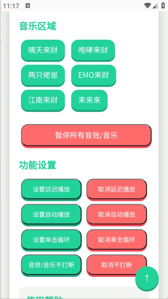 点击“暂停所有音效/音乐”按钮,即可暂停当前正在播放的音频内容。