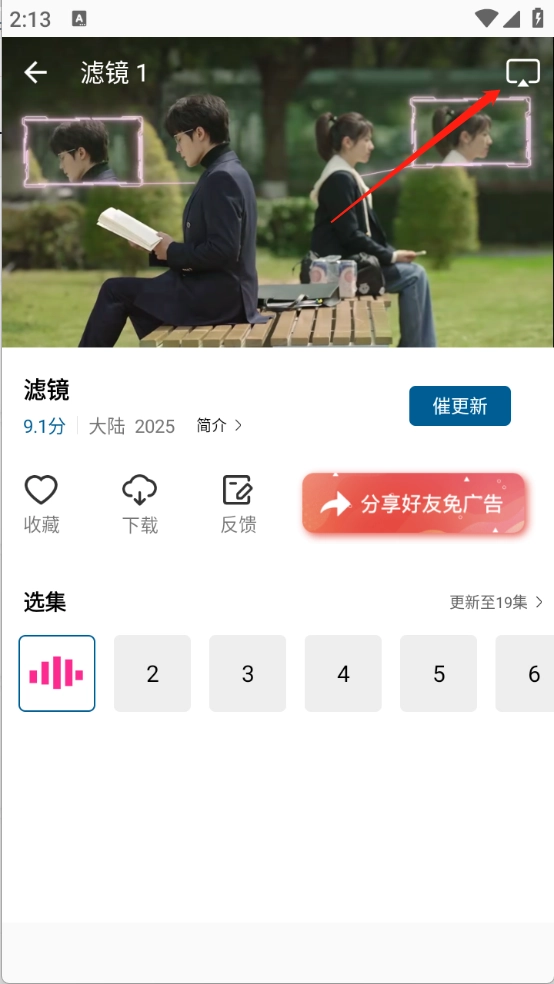 任意打开你喜欢的影视资源后,点击右上角带有箭头指示的标志。