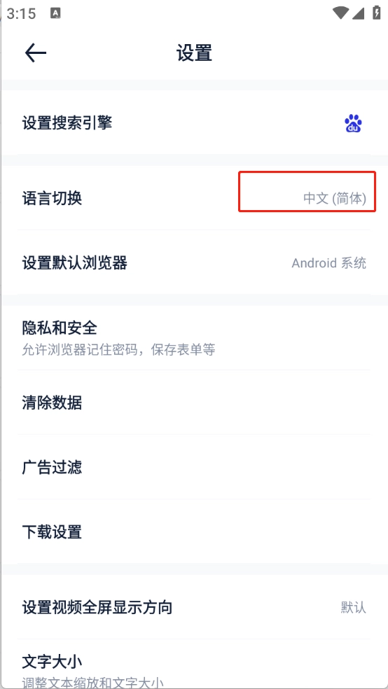 默认使用的搜索引擎是百度,点击百度图标就能切换浏览器。