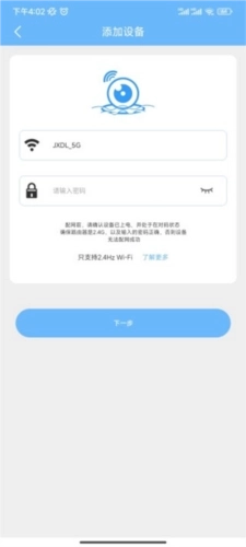 4、连接电源,查看指示灯是否闪烁,当红灯闪烁时,点击下一步;