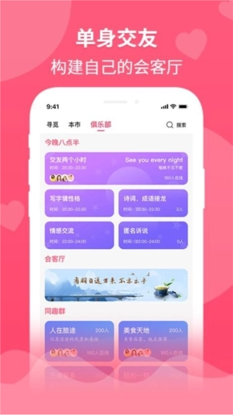 我们还为用户准备了各类聊天俱乐部,这样大家之后就能快速加入俱乐部,和不同的异性用户在线畅快聊天啦。