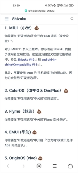 安卓11及更高版本的系统,只需按照步骤指南通过无线调试来启动Shizuku即可,该步骤指南里还包含了针对常见厂商机型可能出现的问题的解决办法。
